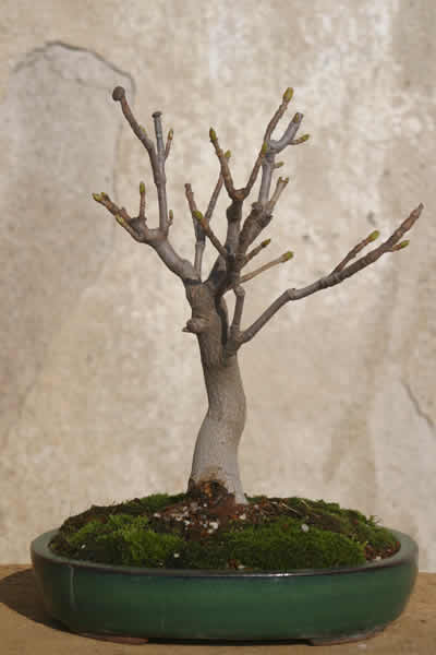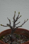Hier kommt die Geschichte von einem meiner Lieblingsbäume. Die Mutterpflanze stand auf der Liegewiese meines Elternhauses. Ich sehe noch heute, wie mein Vater auf seinem Liegestuhl darunter sein Schläfchen hielt. Nun kann er nicht mehr darunter sein Schläfchen halten, weil der Baum inzwischeneingegangen ist. Jetzt zu meinem Bergahorn. Jedes Jahr spriesen viele Sämlinge dieses Ahorns im Garten meiner Eltern. 1994 erblickte dieser kleine Ahorn das Licht der Welt. Im Frühjahr 1995 entnahm ich die Pflanze aus dem Garten un topfte ihn in eine kleinen Tontopf. Im Frühjahr 1995 kappte ich die Triebspitze. 13.02.1997 Wurzelschnitt und umtopfen 13.06.1997 ausgeputzt Juli 1998 Blattschnitt 19.03.2000 umgetopft 06.03.2002 umgetopft Juni 2002 Blattschnitt 07.03.2004 umgetopft 17.02.2005 umgetopft Wie man auf den Bildern von 2006 erkennen kann hat der Baum einen tollen Wurzelansatz und tausende feine Wurzeln gebildet. Dazu noch für einen Bergahorn schon eine helbwegs gute Verzweigung. Meiner Meinung nach der tollste Shohin-Bergahorn den es gibt. Und dann passierte es: Im Sommer 2008 habe ich einmal den Baum zu wenig gegossen. Er hat die Blätter fallen lassen und ich hatte schon Angst, dass mir der Baum eingeht. So nahm ich kurzerhand den Ahorn aus der Schale und topfte ihn in einen größeren Topf ohne irgendwas an den Wurzeln zu machen. Gott sei dank hat der Baum scih optimal erholt wie auf "Bergahorn 01.11.2010" zu sehen. Diese Erfahrung hat ir gezeigt, dass die Shohin und besonders die Bergahorne sehr empfindlich auf Trockenheit reagieren. Im Frühjahr 2011 topfte ich den wieder in eine etwas kleinere Schale, aber eigentlich immer noch viel zu groß. Nächstes Jahr möchte ich meinen Bergahorn wieder in eine halbwegs shohintaugliche Schale pflanzen. |